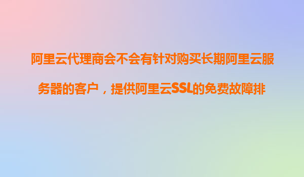 2025-11-20阿里云代理商是否會(huì)為長(zhǎng)期購(gòu)買服務(wù)器的客戶提供免費(fèi)SSL故障排查服務(wù)? 一、阿里云代理商的服務(wù)范圍與價(jià)值定位 阿里云代理商作為官方合作伙伴,其核心價(jià)值在于為企業(yè)客戶提供更靈活的定制化服務(wù)。針對(duì)長(zhǎng)期采...