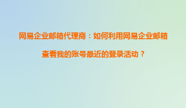 2025-11-03網易企業(yè)郵箱代理商:如何利用網易企業(yè)郵箱查看賬號最近的登錄活動? 引言 在當今數(shù)字化時代,企業(yè)郵箱不僅是內部溝通的重要工具,也是企業(yè)數(shù)據安全的關鍵環(huán)節(jié)。網易企業(yè)郵箱作為國內領先的企業(yè)郵箱服務提供商,以...