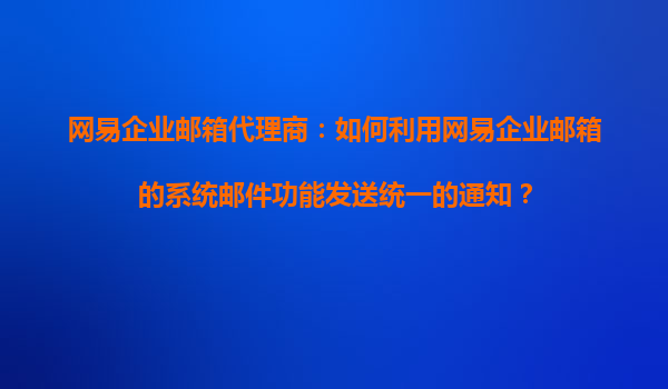 2025-11-03網易企業(yè)郵箱的系統(tǒng)郵件功能概述 網易企業(yè)郵箱作為國內領先的企業(yè)通信解決方案之一,其系統(tǒng)郵件功能為企業(yè)提供了高效、穩(wěn)定的信息傳遞渠道。通過系統(tǒng)郵件功能,企業(yè)管理員可以輕松向全體員工或特定部門發(fā)送統(tǒng)一通知...