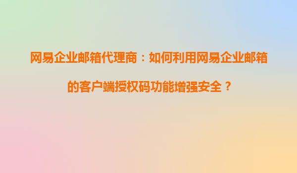 網易企業(yè)郵箱代理商:如何利用網易企業(yè)郵箱的客戶端授權碼功能增強安全? 一、網易企業(yè)郵箱的安全優(yōu)勢與代理商角色 網易企業(yè)郵箱作為國內領先的企業(yè)級郵件服務,其核心優(yōu)勢之一在于完善的安全防護體系...