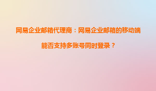 4008-020-360 網(wǎng)易企業(yè)郵箱代理商解析:移動(dòng)端多賬號(hào)登錄功能及合作優(yōu)勢(shì) 一、網(wǎng)易企業(yè)郵箱移動(dòng)端的多賬號(hào)支持 隨著移動(dòng)辦公的普及,企業(yè)用戶對(duì)郵箱的便捷性需求日益增長(zhǎng)...