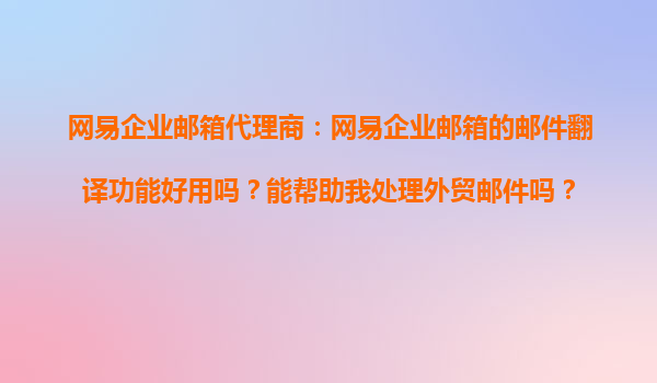 2025-11-03網(wǎng)易企業(yè)郵箱代理商:網(wǎng)易企業(yè)郵箱的郵件翻譯功能好用嗎?能幫助我處理外貿(mào)郵件嗎? 引言:外貿(mào)業(yè)務(wù)中的郵件溝通挑戰(zhàn) 對(duì)于從事外貿(mào)業(yè)務(wù)的企業(yè)和個(gè)人來(lái)說(shuō),跨語(yǔ)言郵件溝通是日常工作中不可避免的挑戰(zhàn)。語(yǔ)言障礙可能...