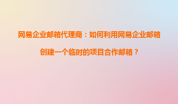 2025-11-03網(wǎng)易企業(yè)郵箱代理商:如何利用網(wǎng)易企業(yè)郵箱創(chuàng)建一個(gè)臨時(shí)的項(xiàng)目合作郵箱? 引言 在企業(yè)項(xiàng)目管理中,臨時(shí)項(xiàng)目合作郵箱是一種高效、安全的溝通方式,尤其適用于跨部門或跨企業(yè)的協(xié)作場(chǎng)景。網(wǎng)易企業(yè)郵箱作為國(guó)內(nèi)領(lǐng)...