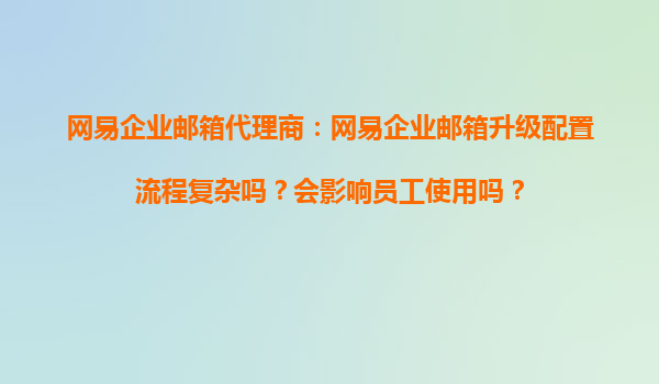 2025-11-03網(wǎng)易企業(yè)郵箱代理商:網(wǎng)易企業(yè)郵箱升級(jí)配置流程復(fù)雜嗎?會(huì)影響員工使用嗎? 一、網(wǎng)易企業(yè)郵箱升級(jí)配置流程解析 許多企業(yè)在考慮升級(jí)網(wǎng)易企業(yè)郵箱時(shí),常會(huì)擔(dān)憂配置流程是否復(fù)雜、是否會(huì)...