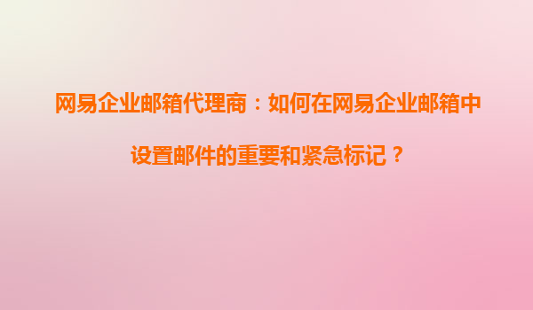 2025-11-03網(wǎng)易企業(yè)郵箱代理商指南:如何設(shè)置郵件的重要和緊急標(biāo)記 引言 在高效的商業(yè)溝通中,標(biāo)記郵件的優(yōu)先級(jí)是企業(yè)郵箱用戶提升效率的重要手段之一。作為網(wǎng)易企業(yè)郵箱的官方代理...