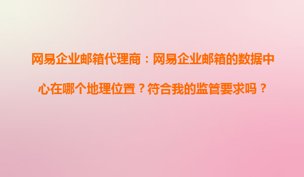 2025-11-03網(wǎng)易企業(yè)郵箱代理商:網(wǎng)易企業(yè)郵箱的數(shù)據(jù)中心在哪個(gè)地理位置?符合我的監(jiān)管要求嗎? 網(wǎng)易企業(yè)郵箱的數(shù)據(jù)中心地理位置 作為國(guó)內(nèi)領(lǐng)先的企業(yè)郵箱服務(wù)提供商,網(wǎng)易企業(yè)郵箱的數(shù)據(jù)中心主要分布在中國(guó)境...
