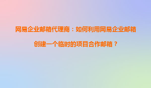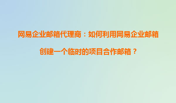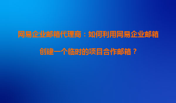 2025-11-02網(wǎng)易企業(yè)郵箱代理商:如何利用網(wǎng)易企業(yè)郵箱創(chuàng)建一個(gè)臨時(shí)的項(xiàng)目合作郵箱? 引言 在企業(yè)項(xiàng)目管理中,臨時(shí)項(xiàng)目合作郵箱是一種高效、安全的溝通方式,尤其適用于跨部門(mén)或跨企業(yè)的協(xié)作場(chǎng)景。網(wǎng)易企業(yè)郵箱作為國(guó)內(nèi)領(lǐng)...