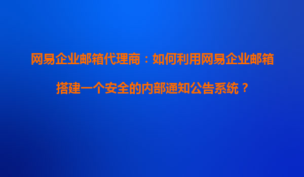 2025-11-02網(wǎng)易企業(yè)郵箱代理商:如何利用網(wǎng)易企業(yè)郵箱搭建一個(gè)安全的內(nèi)部通知公告系統(tǒng)? 一、網(wǎng)易企業(yè)郵箱在安全通知系統(tǒng)中的核心優(yōu)勢(shì) 網(wǎng)易企業(yè)郵箱作為國(guó)內(nèi)領(lǐng)先的企業(yè)級(jí)郵件服務(wù)提供商,具備以下核心能力支持安...