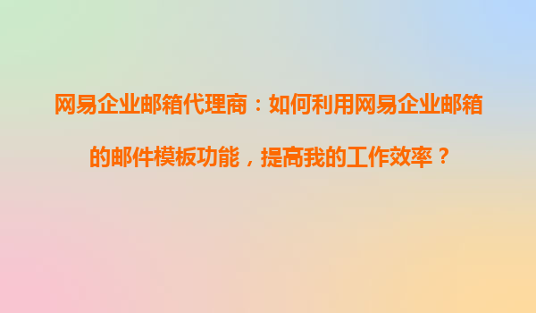2025-11-02網(wǎng)易企業(yè)郵箱代理商:如何利用網(wǎng)易企業(yè)郵箱的郵件模板功能提高工作效率 一、網(wǎng)易企業(yè)郵箱的核心優(yōu)勢(shì) 作為國(guó)內(nèi)領(lǐng)先的企業(yè)郵箱服務(wù)商,網(wǎng)易企業(yè)郵箱憑借以下優(yōu)勢(shì)成為眾多企業(yè)的首選: ...