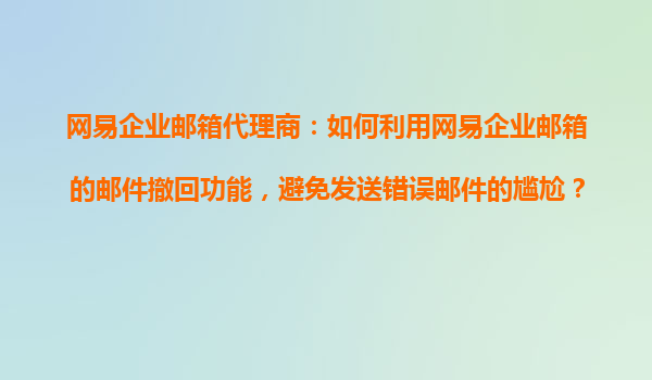 2025-10-29網(wǎng)易企業(yè)郵箱代理商:如何利用網(wǎng)易企業(yè)郵箱的郵件撤回功能,避免發(fā)送錯(cuò)誤郵件的尷尬? 一、網(wǎng)易企業(yè)郵箱的核心優(yōu)勢(shì) 作為國(guó)內(nèi)領(lǐng)先的企業(yè)級(jí)通信服務(wù)提供商,網(wǎng)易企業(yè)郵箱...