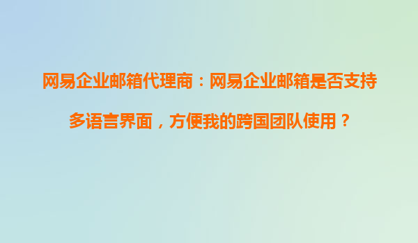 4008-020-360 網(wǎng)易企業(yè)郵箱代理商:網(wǎng)易企業(yè)郵箱是否支持多語(yǔ)言界面,方便跨國(guó)團(tuán)隊(duì)使用? 引言 隨著全球化的快速發(fā)展,越來(lái)越多的企業(yè)開(kāi)始組建跨國(guó)團(tuán)隊(duì),開(kāi)展國(guó)際業(yè)務(wù)。在這...