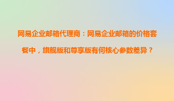 2025-10-30網(wǎng)易企業(yè)郵箱代理商解析:旗艦版與尊享版的核心參數(shù)差異 作為國(guó)內(nèi)領(lǐng)先的企業(yè)郵箱服務(wù)提供商,網(wǎng)易企業(yè)郵箱憑借其穩(wěn)定性、安全性和高效的管理功能深受企業(yè)用戶(hù)青睞。在眾多套餐中,旗艦版和尊享版是企業(yè)用戶(hù)...