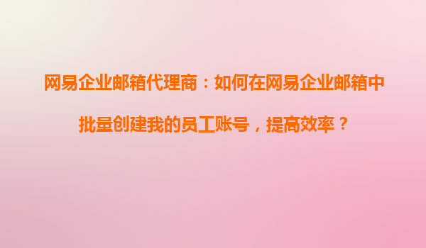 2025-10-29網(wǎng)易企業(yè)郵箱代理商:如何在網(wǎng)易企業(yè)郵箱中批量創(chuàng)建員工賬號(hào),提高效率?一、網(wǎng)易企業(yè)郵箱的優(yōu)勢(shì)在數(shù)字化辦公時(shí)代,企業(yè)郵箱不僅是溝通工具,更是企業(yè)管理效率的體現(xiàn)。作為國(guó)內(nèi)領(lǐng)先的企業(yè)郵箱服務(wù)商...