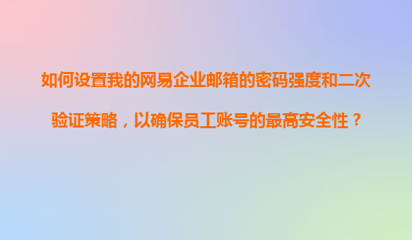 2025-11-07如何設(shè)置網(wǎng)易企業(yè)郵箱的密碼強(qiáng)度和二次驗(yàn)證策略,確保員工賬號(hào)最高安全性? 在數(shù)字化辦公時(shí)代,企業(yè)郵箱的安全性直接關(guān)系到商業(yè)機(jī)密和內(nèi)部溝通的可靠性。網(wǎng)易企業(yè)郵箱憑借其完善的安全機(jī)制和靈活...