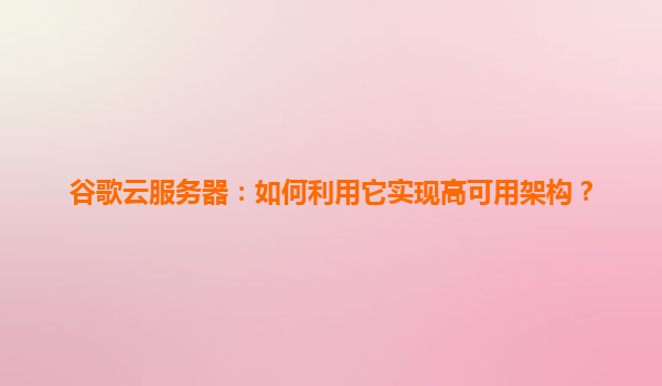 如何利用谷歌云服務器構建高可用架構