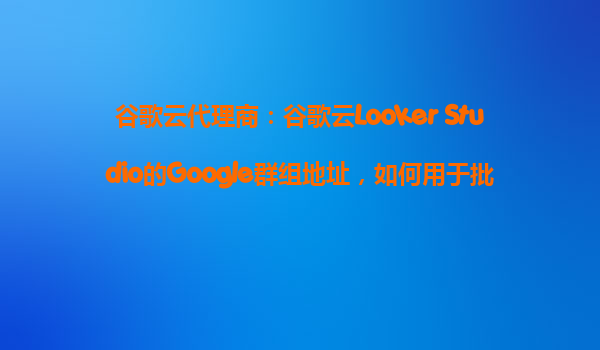 2025-10-31谷歌云代理商:LookerStudio群組地址在批量共享報告中的應用與谷歌云優勢解析 一、LookerStudio與Google群組的批量共享解決方案 GoogleLookerStudio(原DataStudio)作為谷歌云生態中的可視化分...