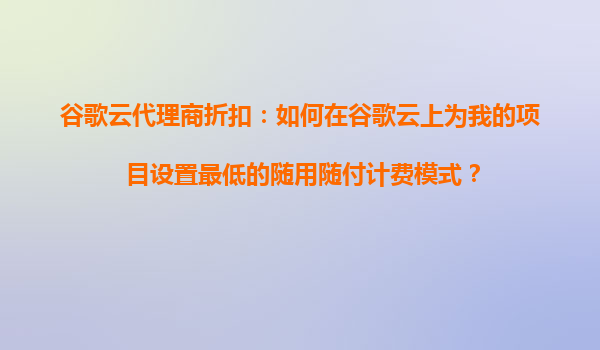 在當今數字化時代,云計算已成為企業提升效率、降低成本的關鍵工具。谷歌云作為全球領先的云計算平臺之一,以其高性能、靈活性和安全性著稱。許多用戶希望通過代理商獲得折扣,同時采用最低的隨用隨付(Pay-As-You-Go)計費模式,以優化成本。本文將詳細介紹如何在谷歌云上為您的項目設置最低的隨用隨付計費模式,并闡述谷歌云的核心優勢。