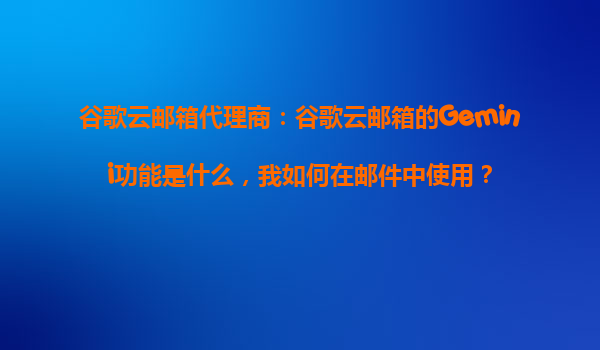 谷歌云郵箱代理商:谷歌云郵箱的Gemini功能解析與使用指南