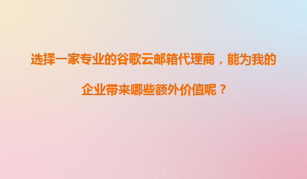 2025-11-05如何找到專業的谷歌云郵箱代理商,獲取谷歌云郵箱新客免費試用和購買優惠? 一、谷歌云郵箱的優勢 在尋找代理商之前,首先需要了解谷歌云郵箱(GoogleWorkspace,原GSuite)的核心優勢,這...