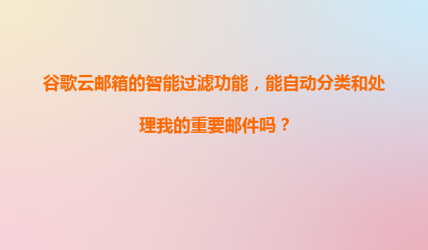 2025-11-05谷歌云郵箱智能過濾:高效分類與處理重要郵件 在現代職場與個人通訊中,高效管理郵件是提升生產力的關鍵。谷歌云郵箱(Gmail)憑借其強大的智能過濾功能,為用戶提供了自動化分類、優先級排序和智...