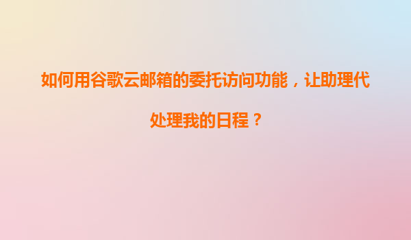 2025-11-05利用谷歌云郵箱委托功能高效管理日程:賦能團隊協作 谷歌云郵箱委托功能概述 谷歌云郵箱的委托訪問(Delegation)功能允許用戶授權其他人員代為處理郵箱中的特定事務,包括收發郵件、管理日歷日程等。該功能通過...