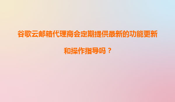 2025-11-05谷歌云郵箱代理商會定期提供最新的功能更新和操作指導嗎? 引言:企業數字化的關鍵工具 在當今快速發展的數字化時代,企業郵箱作為溝通協作的核心工具,其穩定性和功能先進性直接影響業務效率。谷歌云...
