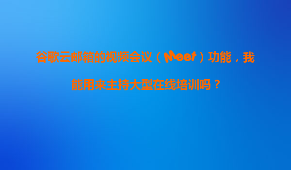 2025-11-05谷歌云郵箱的視頻會議(Meet)功能能否勝任大型在線培訓? 一、谷歌Meet的核心功能與特性 谷歌Meet作為谷歌云郵箱(Gmail)內置的視頻會議工具,專為企業協作設計,具備高清視頻、屏幕共享、...
