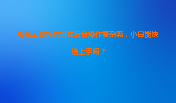 2025-11-04谷歌云郵箱管理后臺操作難度解析:小白用戶能否快速上手? 一、谷歌云郵箱管理后臺初體驗 谷歌云郵箱(GoogleWorkspace)作為企業級郵件解決方案,其管理后臺...