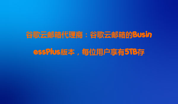 2025-10-31谷歌云郵箱代理商:谷歌云郵箱BusinessPlus版本存儲空間詳解與優勢解析 一、BusinessPlus版本的核心優勢:5TB超大存儲空間 谷歌云郵箱(GoogleWorkspace)的BusinessPlus版本為企業用戶提供了令人矚目的每...