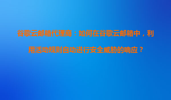 2025-10-30谷歌云郵箱代理商:如何通過活動規則實現自動化安全威脅響應 引言:企業郵箱安全的必要性 在數字化辦公環境中,企業郵箱的安全性直接影響業務連續性和數據隱私。谷歌云郵箱(Goog...