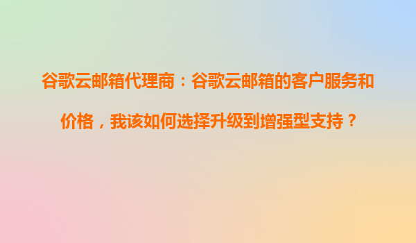 2025-10-31谷歌云郵箱代理商:如何選擇升級到增強型支持 一、谷歌云郵箱的核心優勢 谷歌云郵箱(GoogleWorkspace)作為全球領先的企業級郵件解決方案,憑借以下優勢成為眾多企業的首選: 高可靠性-99.9%的運行時間保證...