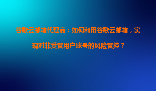 2025-10-31谷歌云郵箱代理商指南:高效管控非受管用戶賬號風險 1.谷歌云郵箱的核心優勢 谷歌云郵箱(GoogleWorkspace)作為企業級郵件解決方案,提供99.9%的服務可用性保障和端到端加密傳輸,其分布式架構能有效抵...