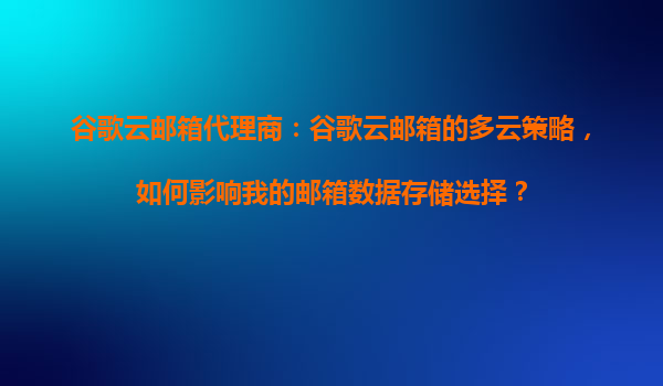 2025-10-31谷歌云郵箱代理商:谷歌云郵箱的多云策略如何影響郵箱數據存儲選擇? 引言 在數字化轉型的浪潮中,企業郵箱作為核心通信工具,其數據存儲的安全性、可靠性及成本效益成為關鍵考量。谷歌...
