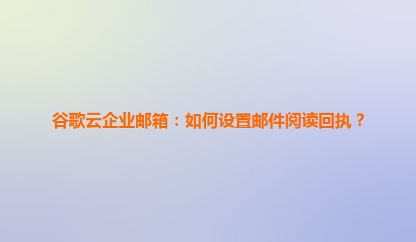 谷歌云企業郵箱:如何設置郵件閱讀回執? 谷歌云企業郵箱(GoogleWorkspace)作為全球領先的企業級郵件解決方案,不僅提供高效的郵件管理功能,還支持個性化設置以滿足不同企業的需求。其中,郵件...