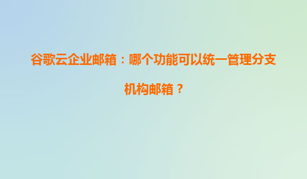 2025-04-08谷歌云企業郵箱:如何統一管理分支機構郵箱? 對于跨國企業或擁有多個分支機構的公司而言,郵箱系統的統一管理是提升協作效率、保障數據安全的關鍵。谷歌云企業郵箱(GoogleWorkspace)憑借其強大...