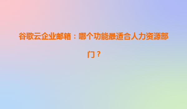 2025-04-08谷歌云企業郵箱:人力資源部門的高效協作與安全管理利器 一、為什么人力資源部門需要專屬企業郵箱? 人力資源部門作為企業人才管理的核心樞紐,需要高頻處理招聘溝通、員工檔案管理、薪酬保密信息傳遞...