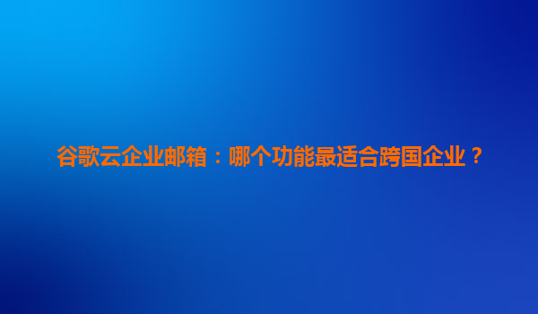 2025-04-07谷歌云企業郵箱:跨國企業的高效協作與全球化管理解決方案 一、全球化布局:無縫覆蓋跨國企業的多區域需求 1.1谷歌云全球服務器網絡的優勢 谷歌云...