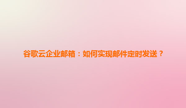 2025-04-06谷歌云企業郵箱如何實現郵件定時發送 定時發送郵件的應用場景 在跨國協作、跨時區溝通或營銷活動中,定時發送郵件能顯著提升工作效率。通過谷歌云企業郵箱結合第三方工具(如GoogleWorkspace...