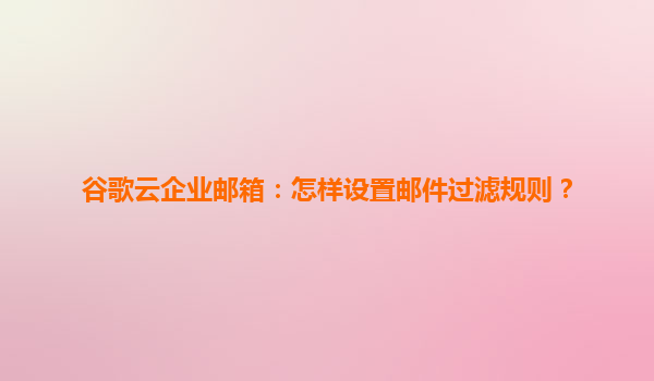 谷歌云企業郵箱:如何高效設置郵件過濾規則 一、谷歌云企業郵箱的核心優勢 在探討郵件過濾規則設置之前,有必要了解谷歌云企業郵箱(GoogleWorkspace)的核心競爭力: 智能AI技術:基于...