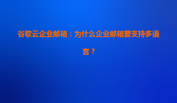 2025-04-06谷歌云企業郵箱:為什么企業郵箱要支持多語言? 一、多語言支持對企業的重要性 在全球化的商業環境中,企業郵箱不僅是內部溝通的工具,更是連接全球客戶與合作伙伴的橋梁。支持多語言的企業郵箱能夠幫助企...