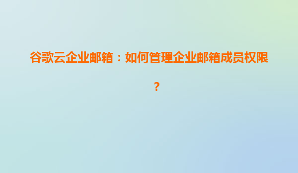 谷歌云企業郵箱的權限管理概述 谷歌云企業郵箱(GoogleWorkspace)作為全球領先的云端協作平臺,不僅提供高效穩定的郵件服務,更通過靈活的權限管理功能滿足企業多樣化的管理需求。其基于云端的架構和...
