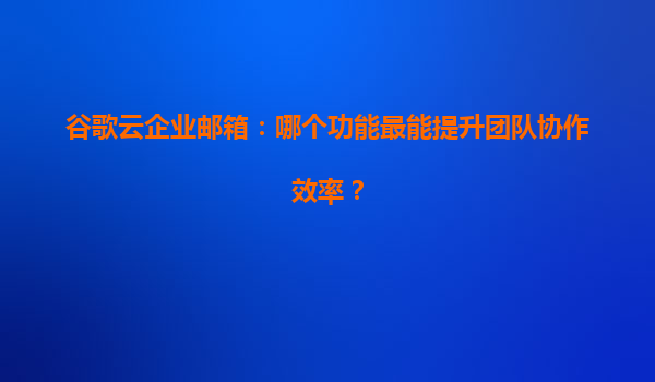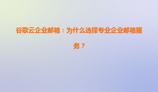 2025-04-05谷歌云企業郵箱簡介與優勢 谷歌云企業郵箱(GoogleWorkspace)是一款專為企業用戶設計的云端郵件服務,其核心功能不僅包含高效穩定的郵件收發,還集成了智能管理工具和自動化功能。作為全球領先的云服務提...