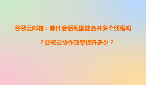 2025-04-05谷歌云郵箱郵件會話視圖與協作效率提升解析 一、郵件會話視圖:能否合并多個線程? 谷歌云郵箱(Gmail)的會話視圖(ConversationView)功能,可將同一主題下的多封往來郵件自動合并為單一會話線程,...