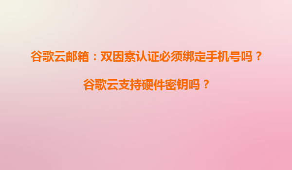 2025-04-04谷歌云郵箱的雙因素認證與硬件密鑰支持解析 雙因素認證:靈活性與安全性并存 谷歌云郵箱的雙因素認證(2FA)是其安全體系的核心功能之一。用戶常問是否必須綁定手機號才能啟用此功能。實際上,谷歌云提供了...