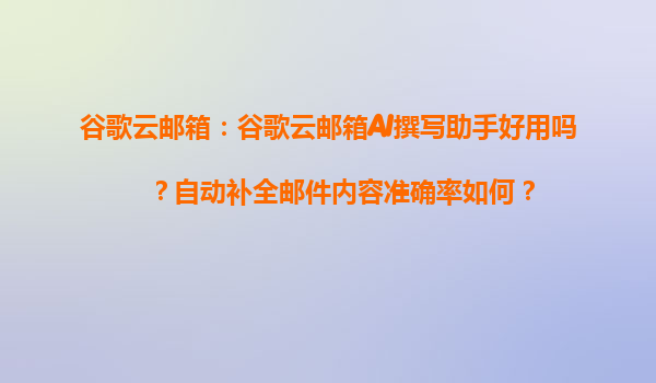 2025-04-04谷歌云郵箱AI撰寫助手:智能辦公的未來與代理商的協同優勢 一、谷歌云郵箱AI撰寫助手的核心功能 谷歌云郵箱(GoogleWorkspace)的AI撰寫助手基于自然語言處理(NLP)技術,能夠通過分析郵件上下文、用...