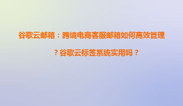 2025-04-04跨境電商客服郵箱的高效管理與谷歌云標簽系統實踐 一、跨境電商客服郵箱管理的核心挑戰 跨境電商客服團隊常面臨以下問題: 海量郵件處理:多國家客戶咨詢導致每日郵件量激增; ...