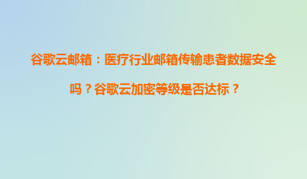 2025-04-04谷歌云郵箱在醫療行業傳輸患者數據的安全性分析 一、醫療行業數據安全的特殊要求 醫療行業涉及患者隱私數據(如病歷、診斷記錄等)的傳輸需滿足嚴格法規要求,包括HIPAA(美國健康保險流通與責任法案)、GD...