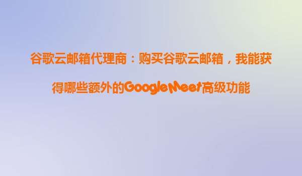 2025-10-27谷歌云郵箱代理商:購買谷歌云郵箱,我能獲得哪些額外的GoogleMeet高級功能? 一、谷歌云郵箱與GoogleMeet的深度整合優勢 通過谷歌云郵箱代理商購買谷歌云郵箱(GoogleWorkspace企業版),用戶不僅獲得...