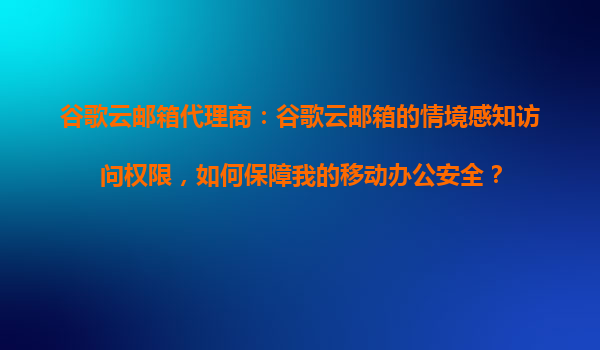 2025-10-27谷歌云郵箱代理商:如何利用情境感知訪問權限保障移動辦公安全? 一、移動辦公的安全挑戰 隨著遠程辦公和移動設備的普及,企業數據面臨釣魚攻擊、設備丟失、未...