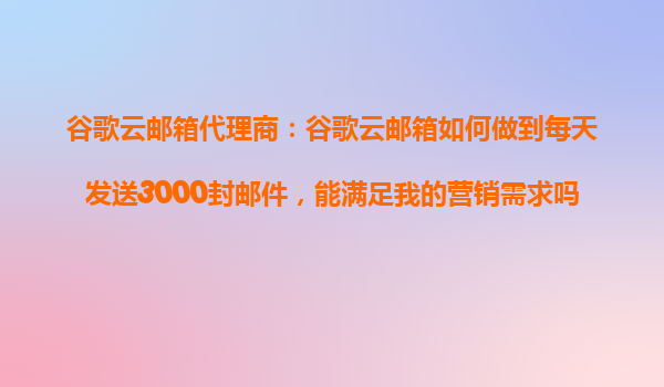 2025-10-27谷歌云郵箱代理商:谷歌云郵箱如何做到每天發送3000封郵件,能滿足我的營銷需求嗎? 引言 在數字化營銷時代,電子郵件營銷仍然是企業推廣產品和服務的重要手段。然而,如何在遵守反垃圾郵件規則的...